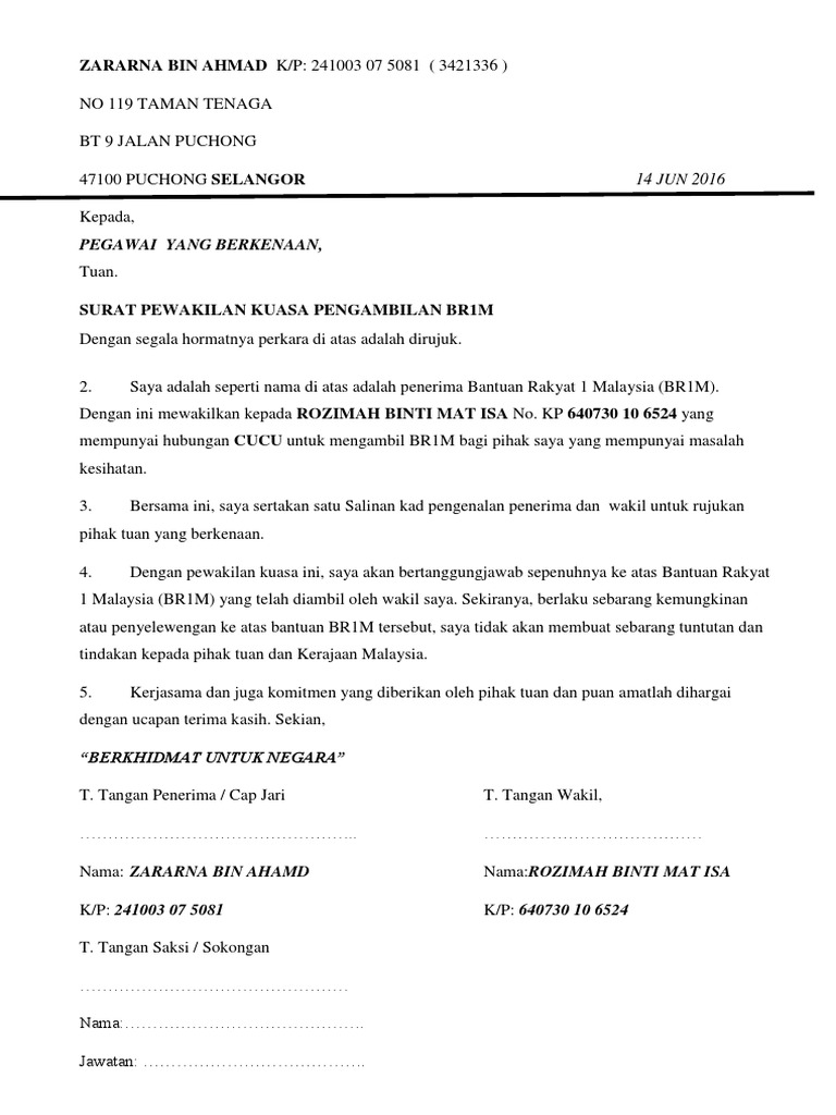 Surat Pengesahan Wakil Utk Ambil Brim Pdf